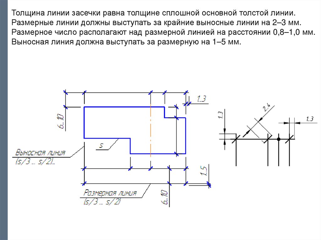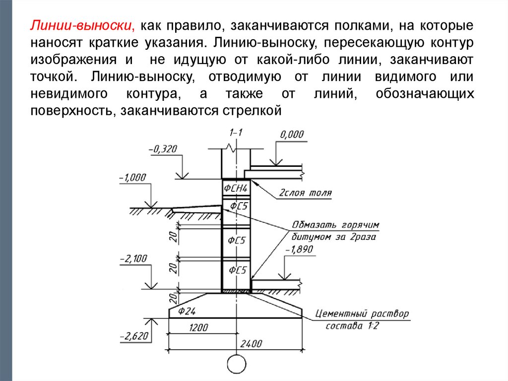 5. Проводят выносные и размерные линии, знаки, с помощью которых
