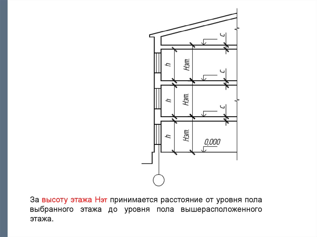поверхности земли, условного верха карниза и чердачного перекрытия, а
