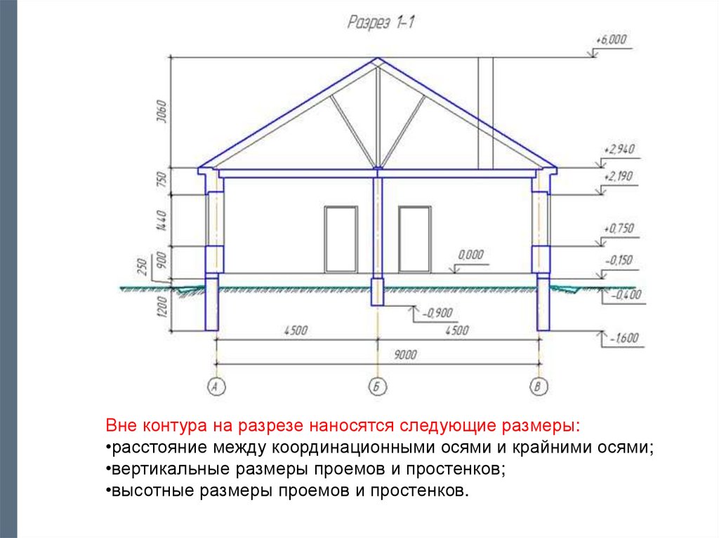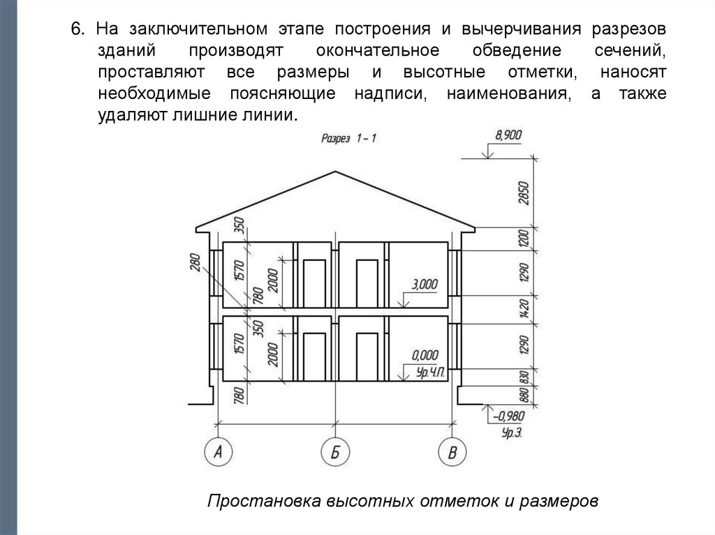 6. На заключительном этапе построения и вычерчивания разрезовзданий