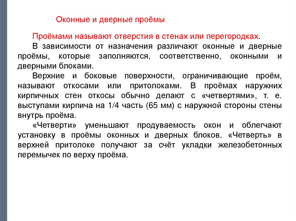 проемов во внутренних стенах, в кирпичных перегородках, а также их привязку