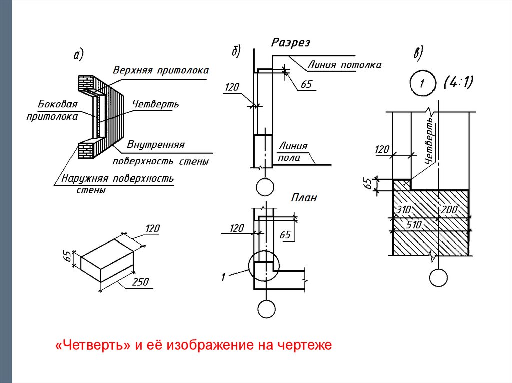 четверть кирпича, толщина стены в два кирпича равна 510 мм,