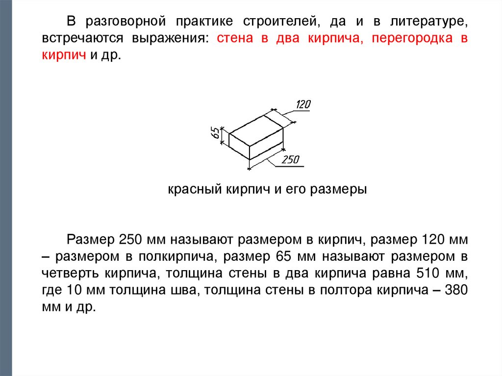 Размер 250 мм называют размером в кирпич, размер 120 мм