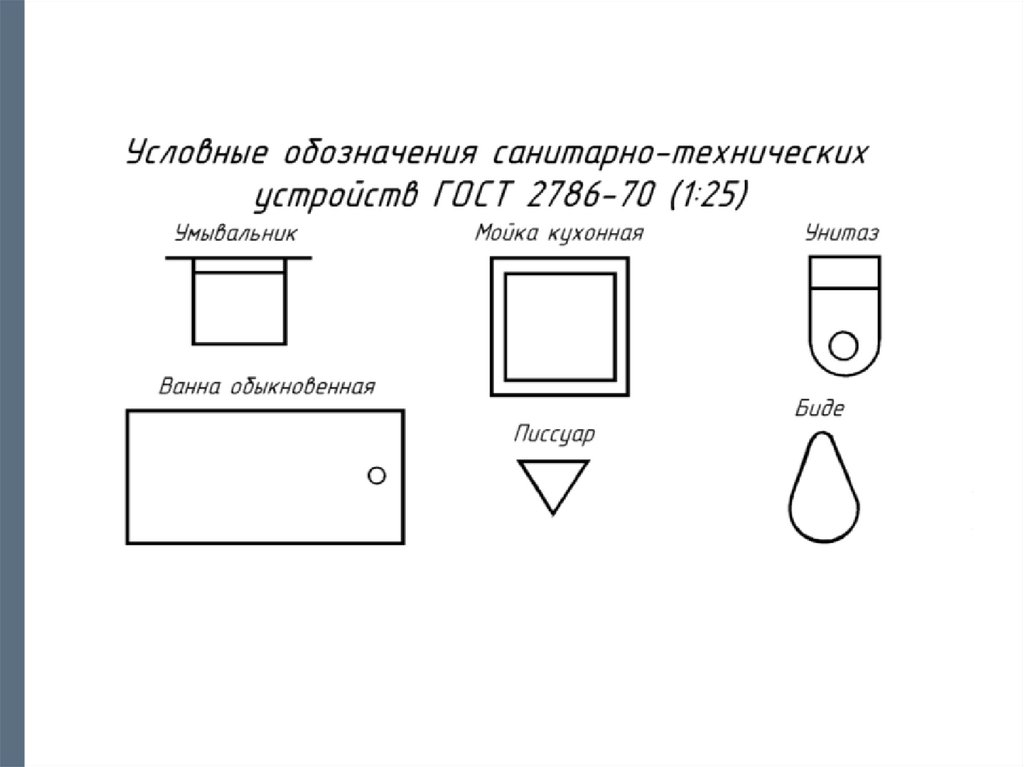 5. Вычерчивают условные обозначения лестниц, санитарно-технического и