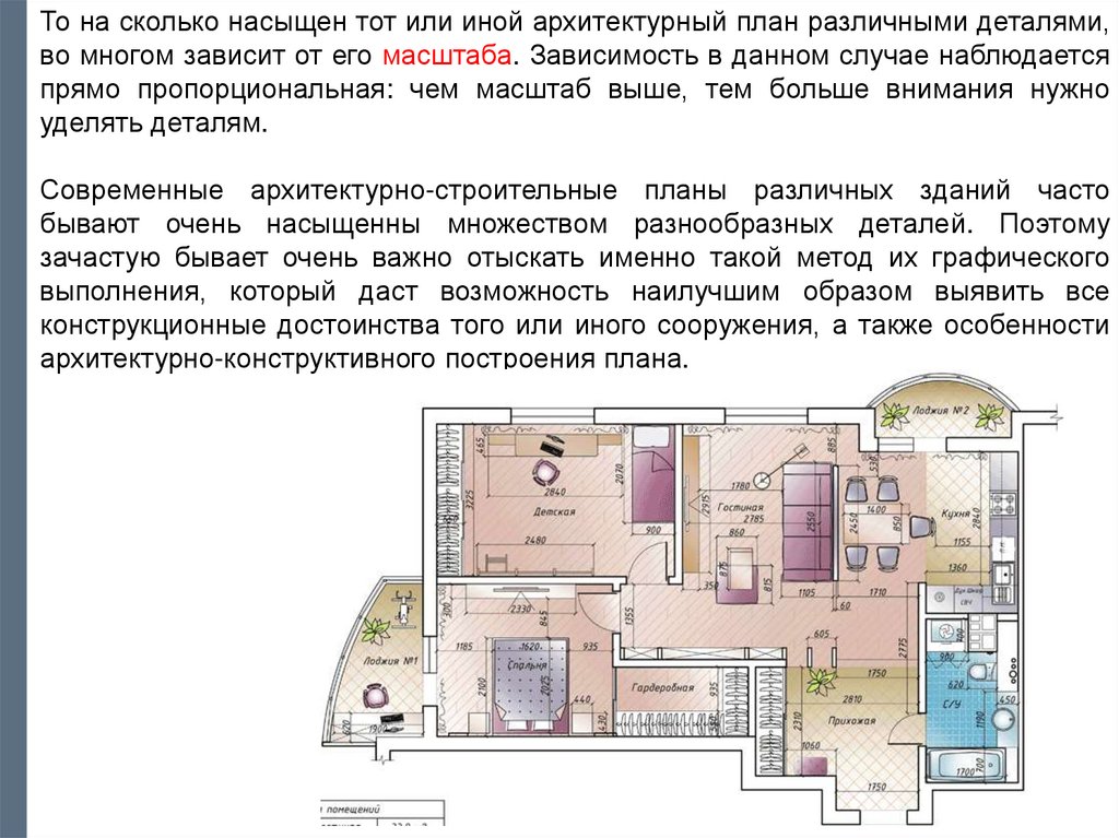 То на сколько насыщен тот или иной архитектурный план различными деталями,во многом зависит от его масштаба. Зависимость в данном случае наблюдается