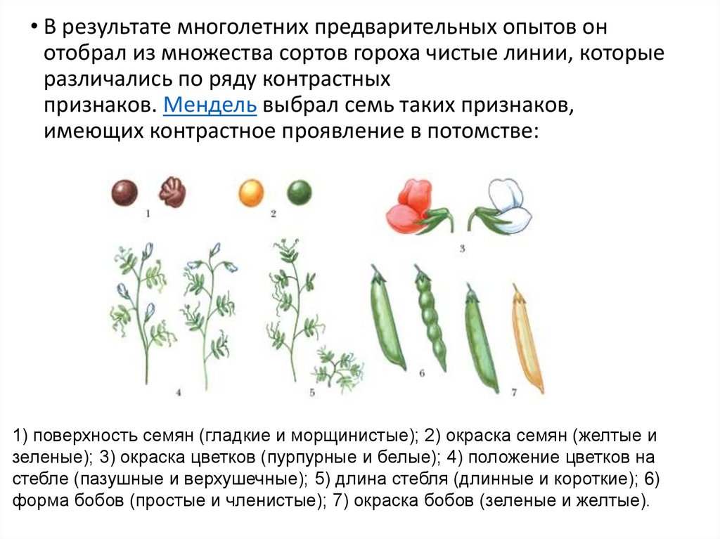 • В результате многолетних предварительных опытов онотобрал из множества сортов гороха чистые линии, которые