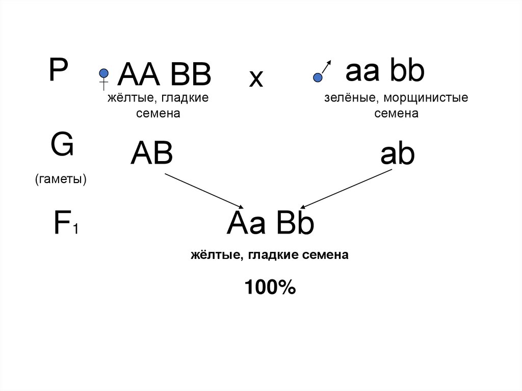 I закон Менделя (закон единообразия гибридов первого поколенияили правило доминирования ) - при моногибридном скрещивании у