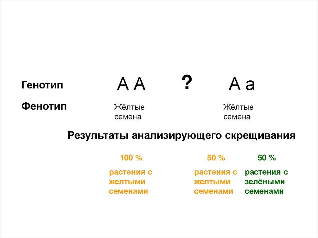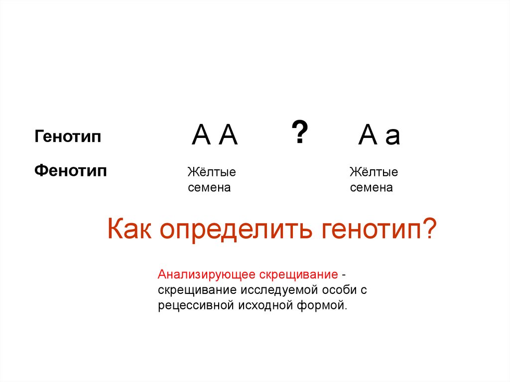 Оценивая признаки потомства, можно сделать вывод о генотипе гибридной особи.