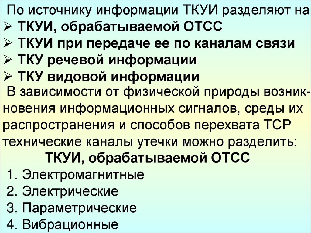 средств добывания информации, в соответствии с которым ТР делится на:
