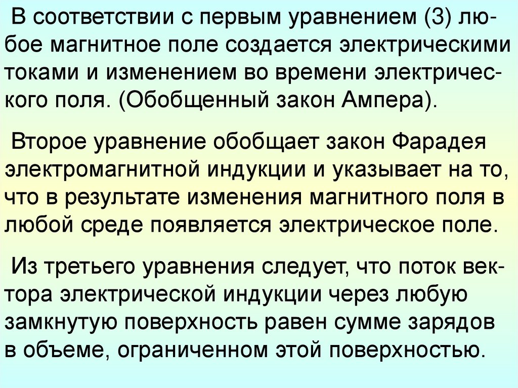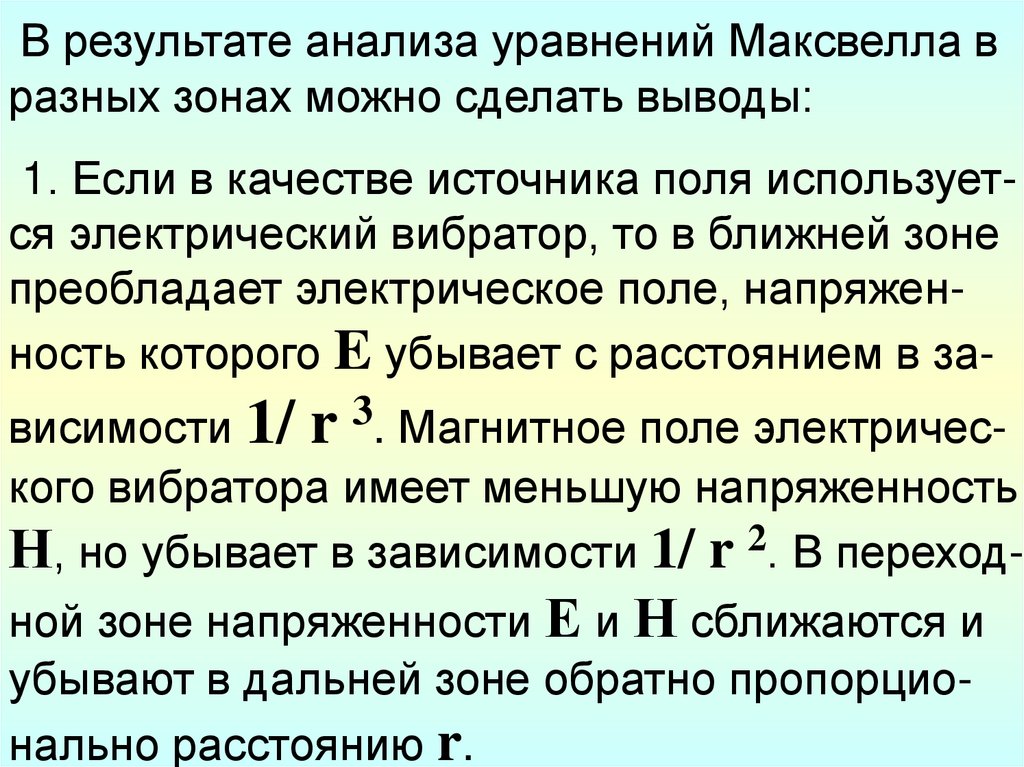 В результате анализа уравнений Максвелла вразных зонах можно сделать выводы: