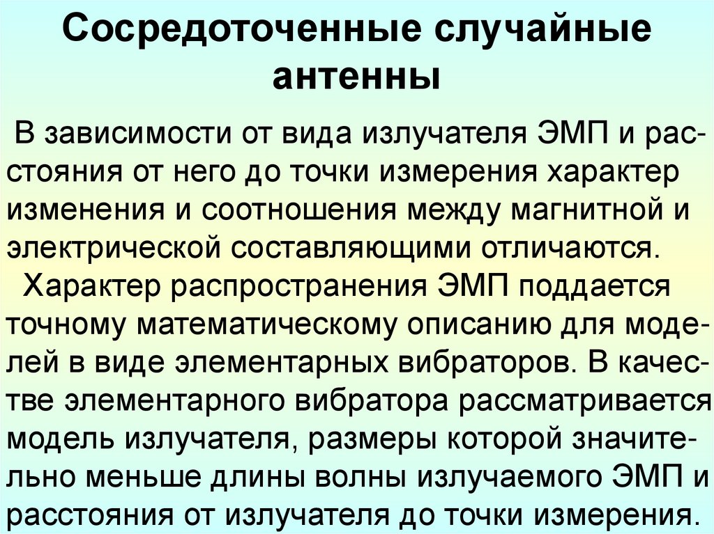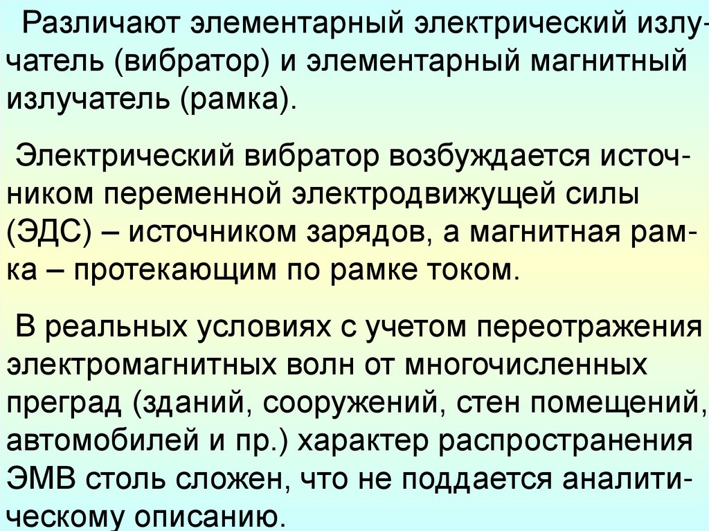 в первую очередь зависеть от того, каким источником ЭМП можно заменить реальный излучащий элемент – электрическим вибратором или