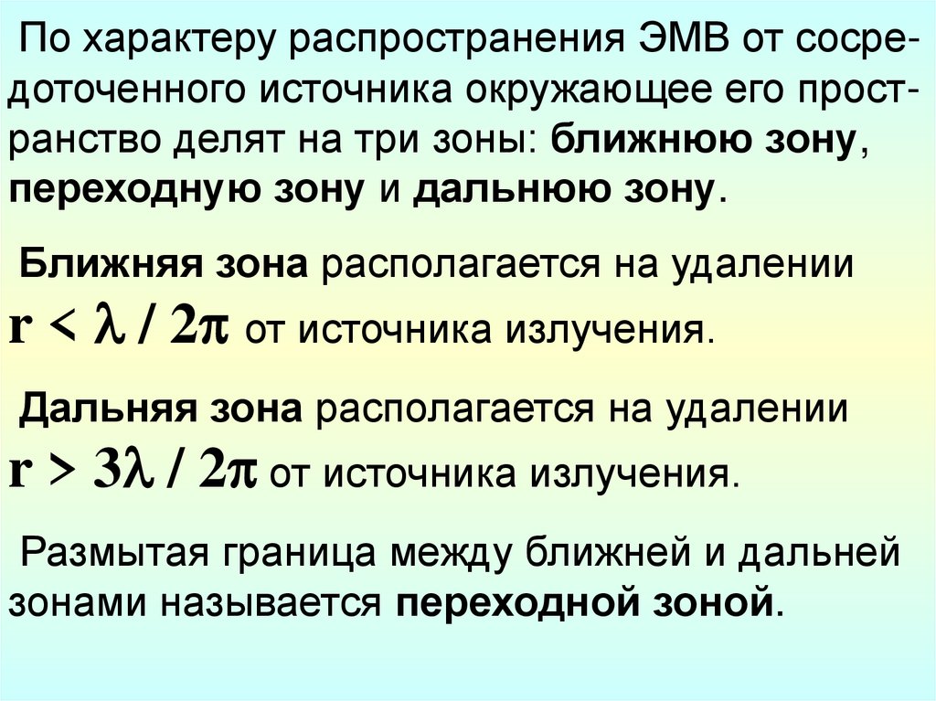 Н, но убывает в зависимости 1/ r 2. В переходной зоне напряженности Е и Н сближаются и