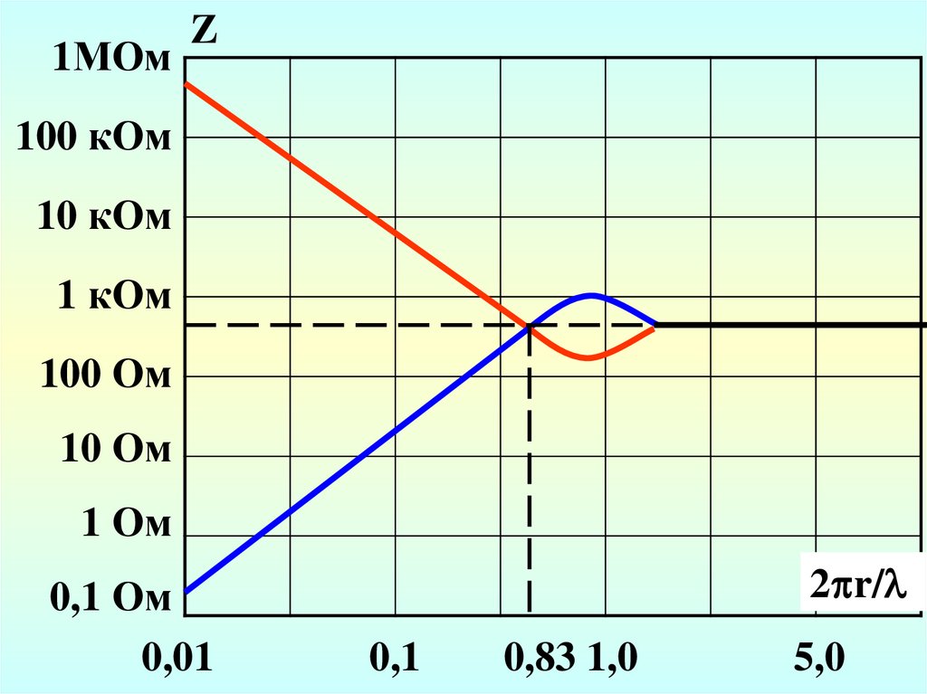 дальней зоне равно Z0 = 377 Ом. Для электрического вибратора в ближней зоне Е>>Н,