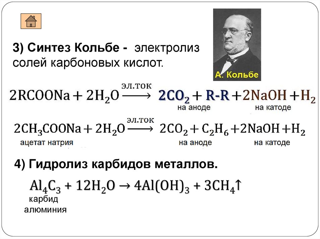 3) Синтез Кольбе - электролизсолей карбоновых кислот.