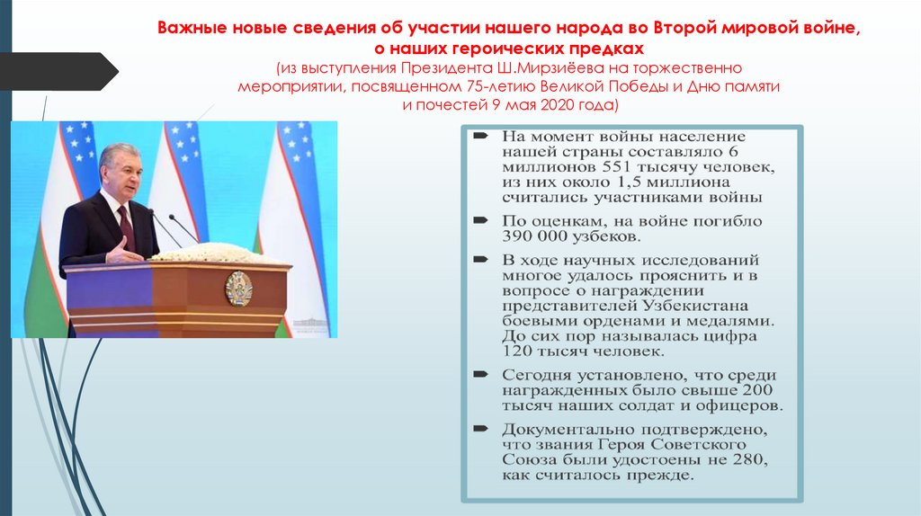 29. Важные новые сведения об участии нашего народа во Второй мировой войне, о наших героических предках (из выступления Президента