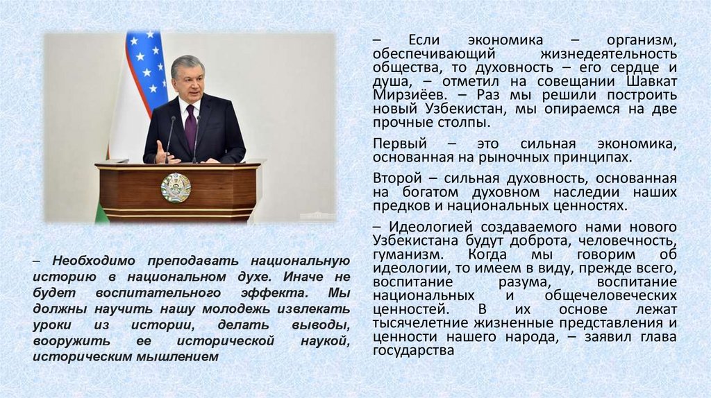 4. Президент Республики Узбекистан Ш.М.Мирзиёев о роли исторической памяти в