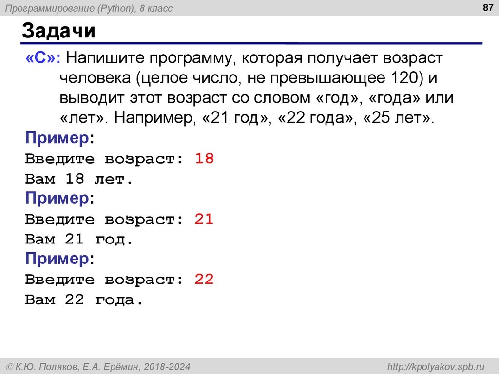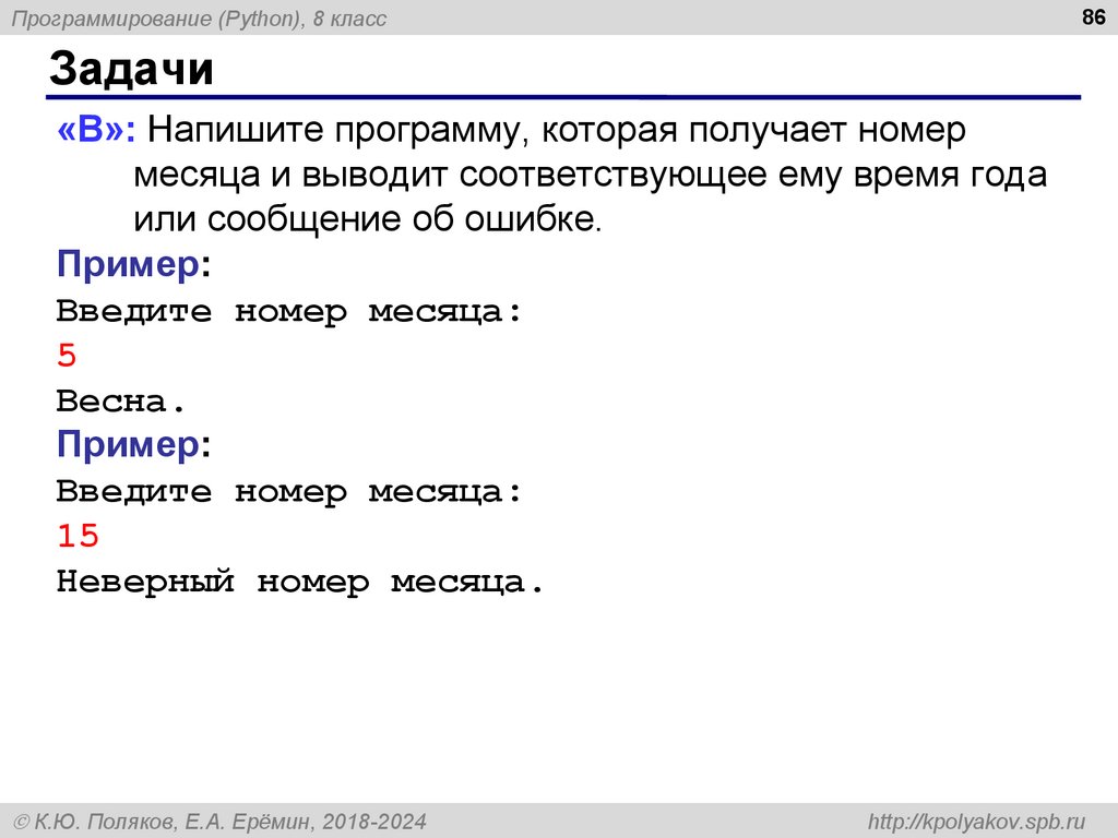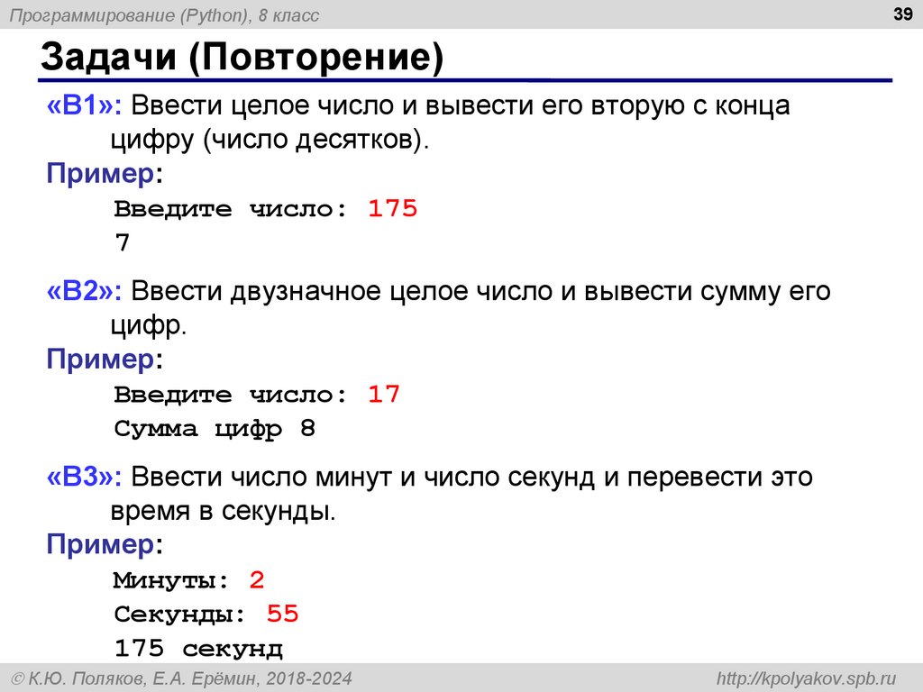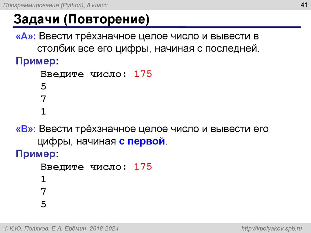 8Программирование (Python), 8 класс