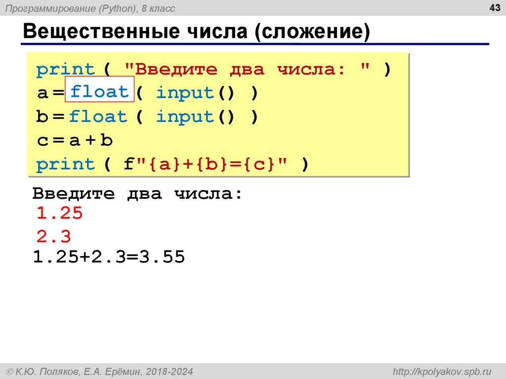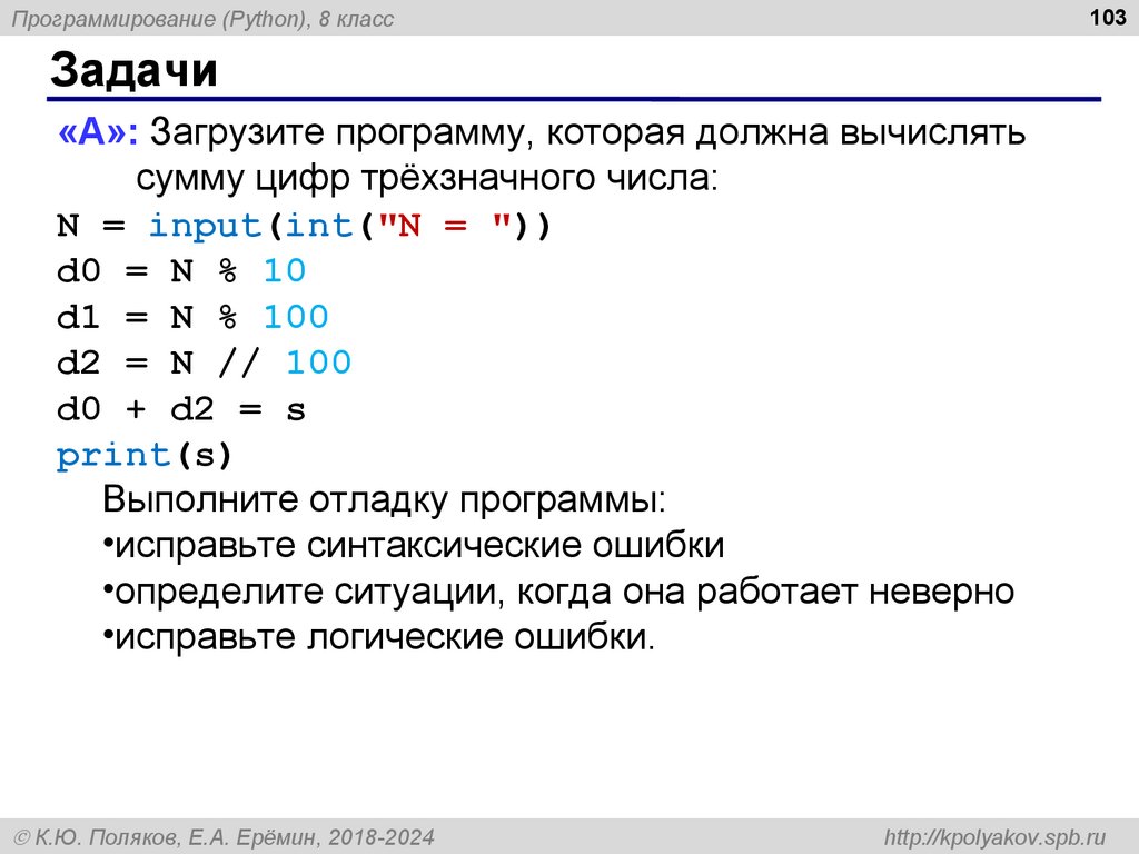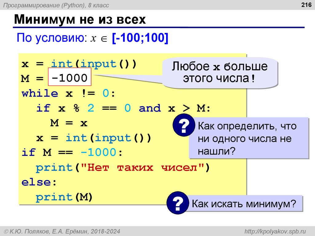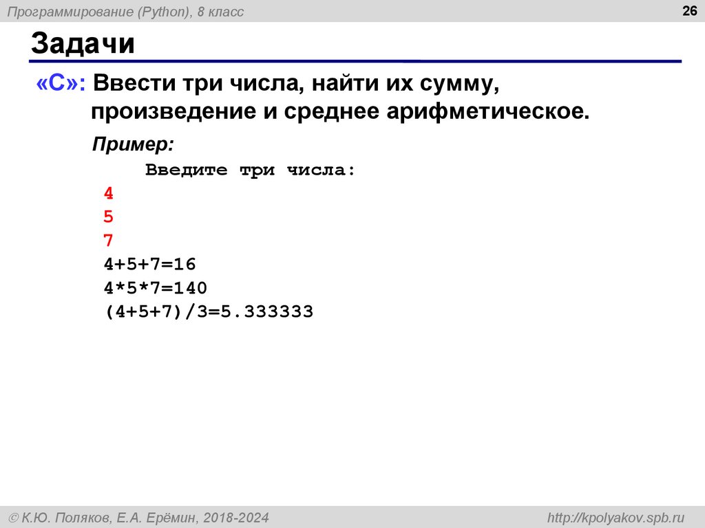 8Программирование (Python), 8 класс