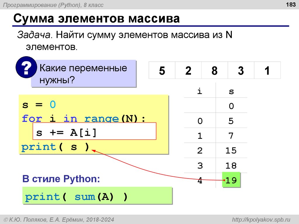 253Программирование (Python), 8 класс