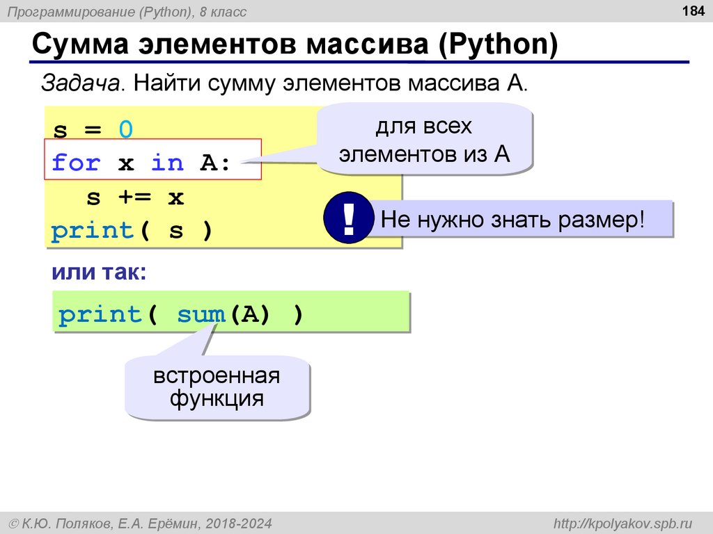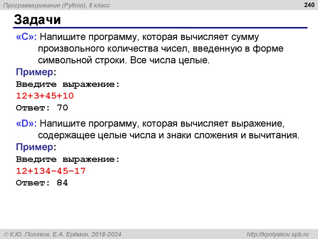 Программирование (Python), 8 класс260