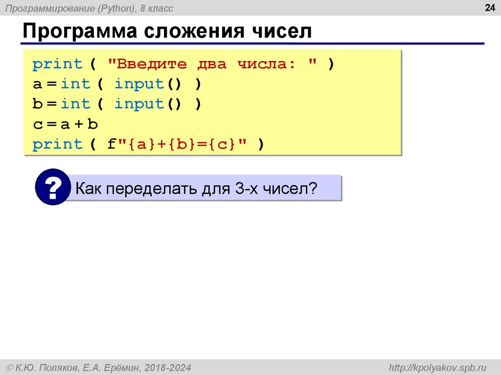 7Программирование (Python), 8 класс