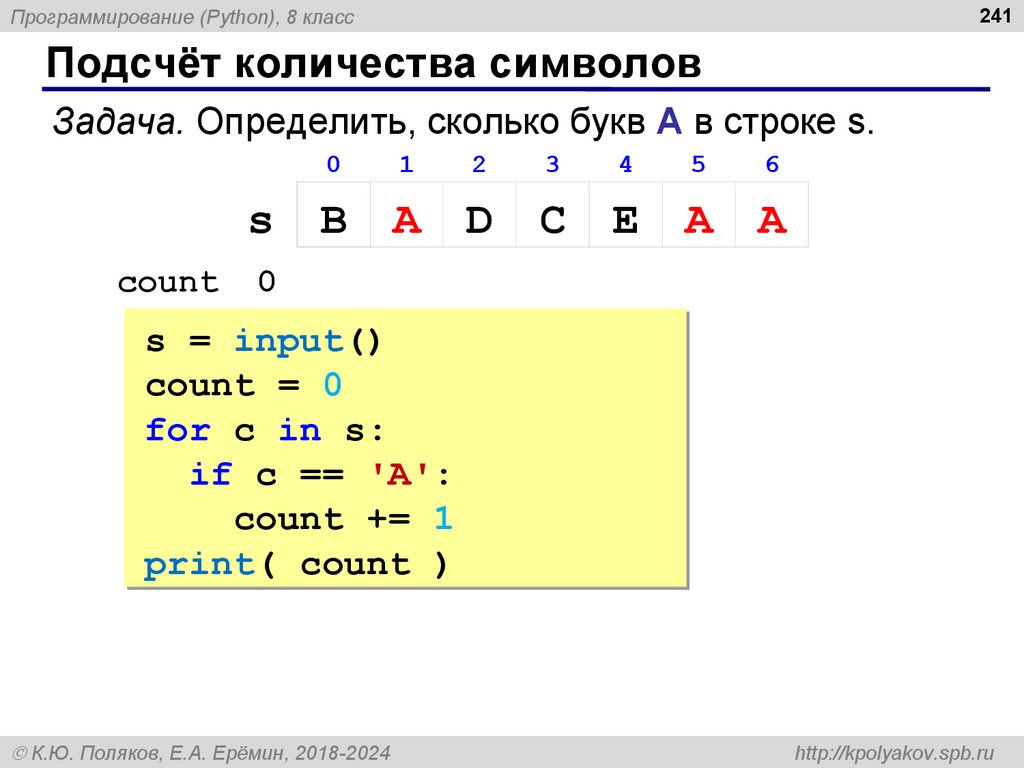 «A»: Напишите программу, которая вводит символьную