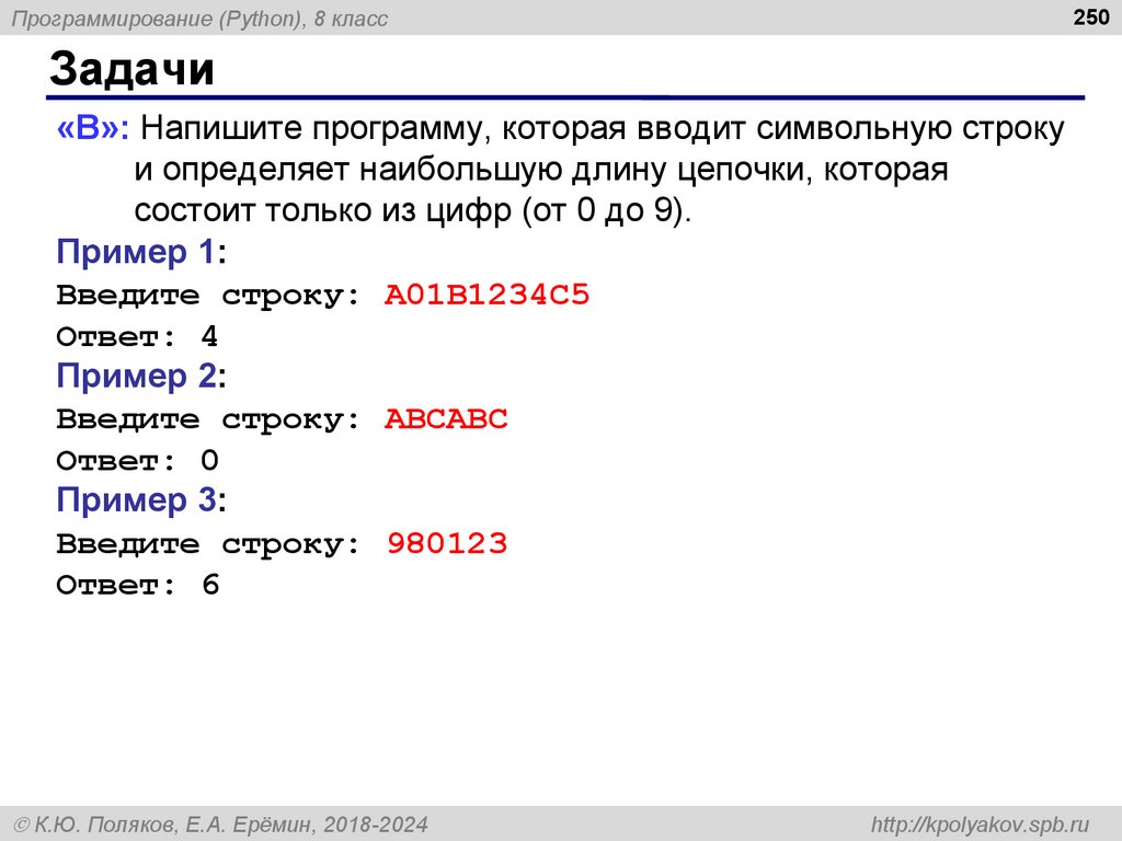 250Программирование (Python), 8 класс