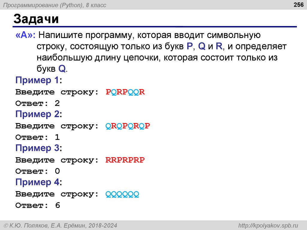 строку, состоящую только из букв P, Q и R, и определяет