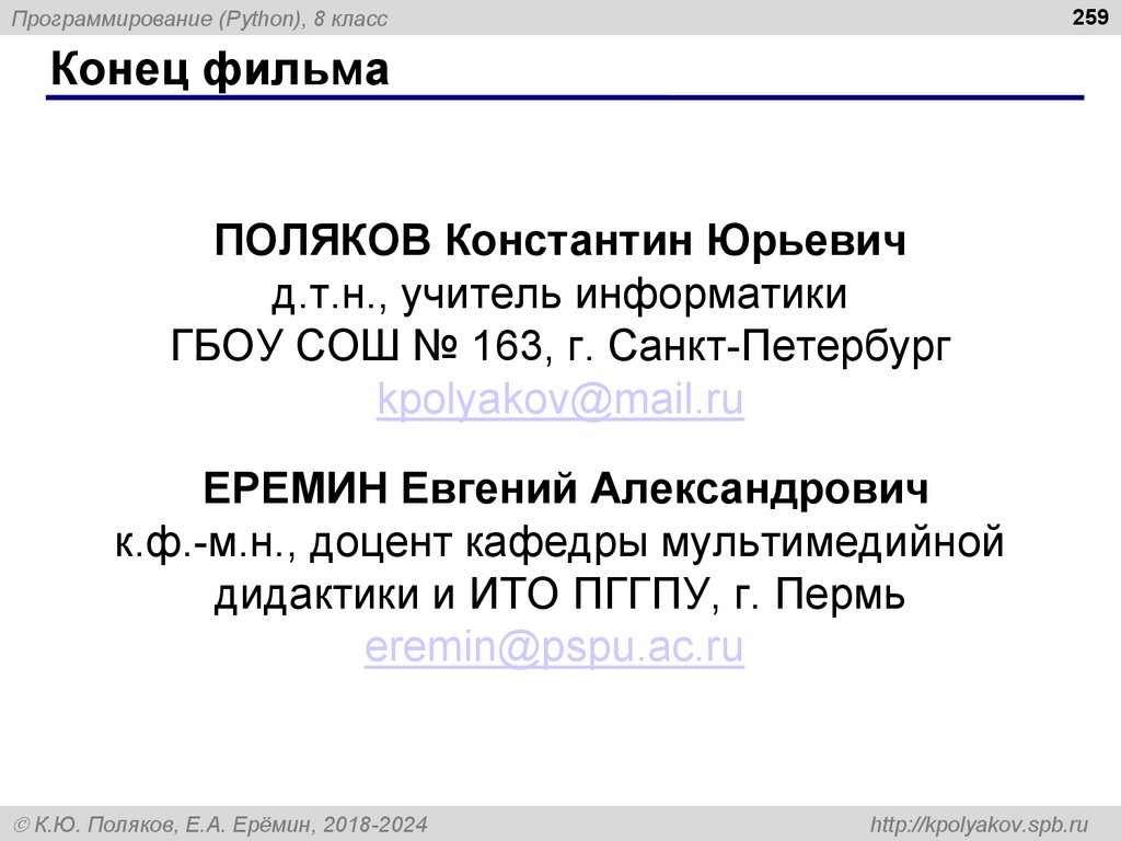 259Программирование (Python), 8 класс