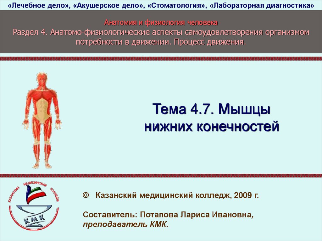 1. Анатомия и физиология человека Раздел 4. Анатомо-физиологические аспекты самоудовлетворения организмом потребности в движении.