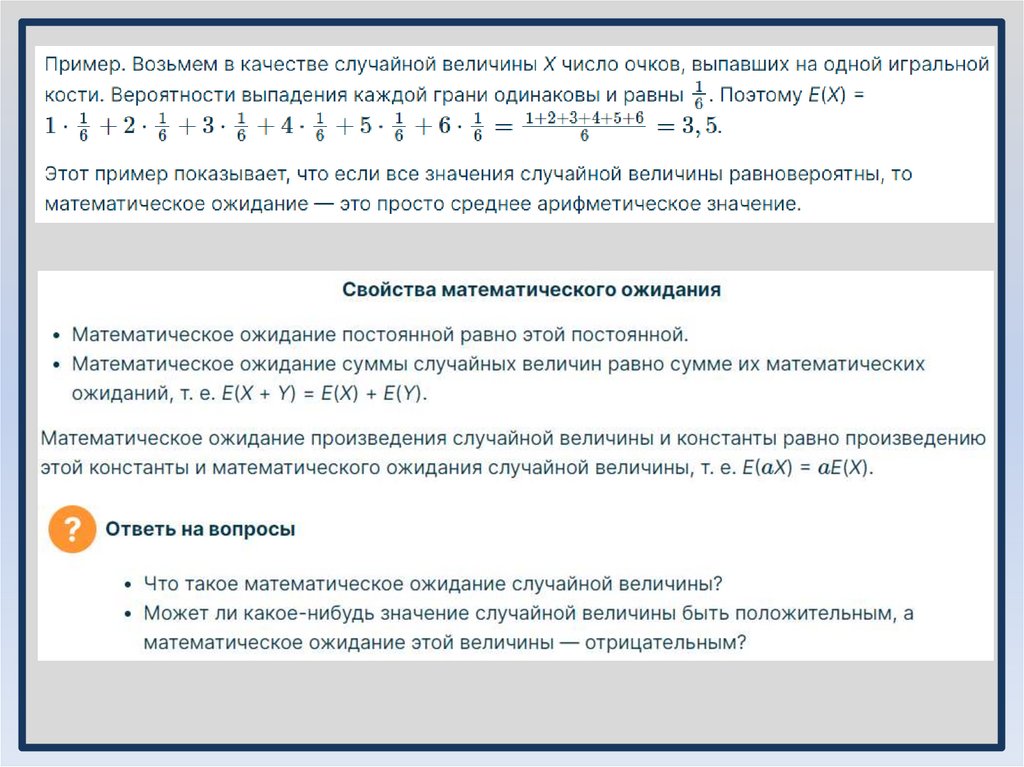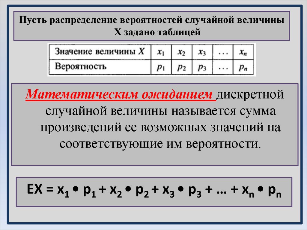 ЕХ = х1 • p1 + х2 • p2 + х3 • p3 + … + хn • pn