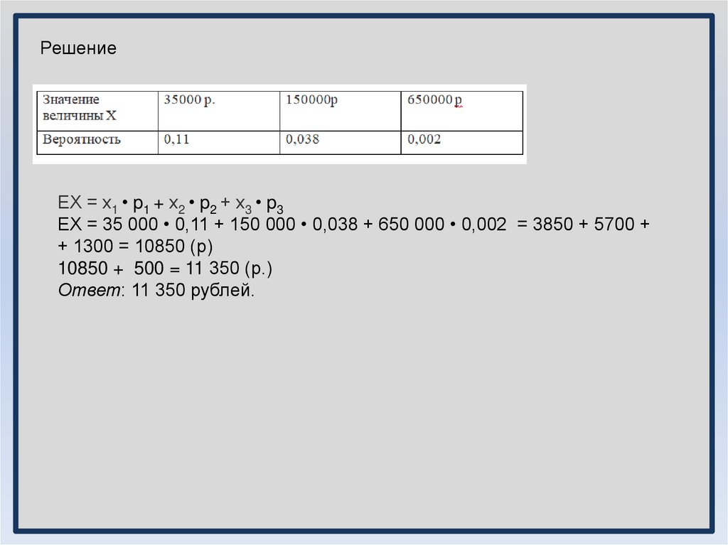 Решение:ЕХ = х1 • p1 + х2 • p2 + х3 • p3