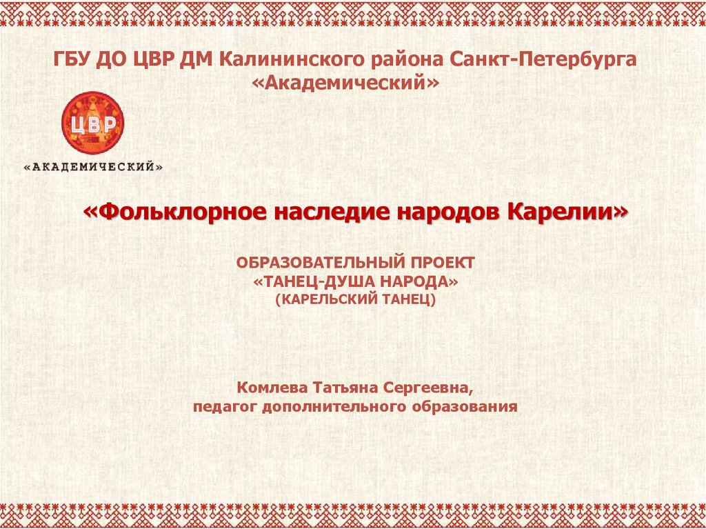 «Фольклорное наследие народов Карелии»ОБРАЗОВАТЕЛЬНЫЙ ПРОЕКТ