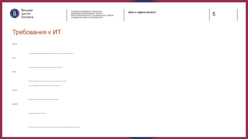 Доступность 99,5% рабочего времени, восстановляемость, резервное копирование, целостность данных