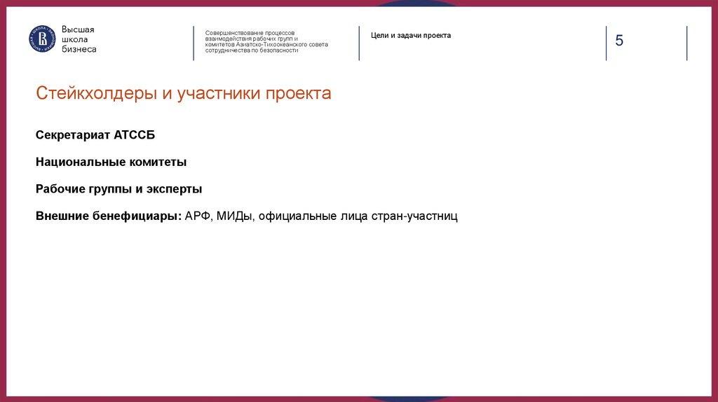 Внешние бенефициары: АРФ, МИДы, официальные лица стран-участниц
