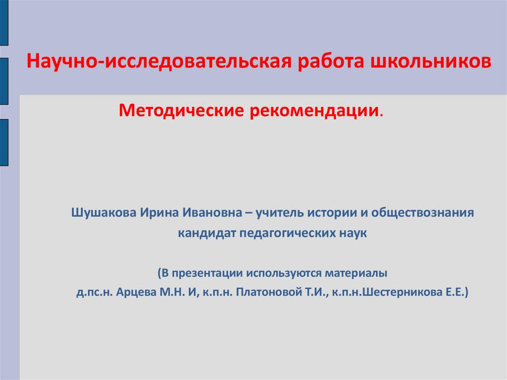 Научно-исследовательская работа школьниковМетодические рекомендации.
