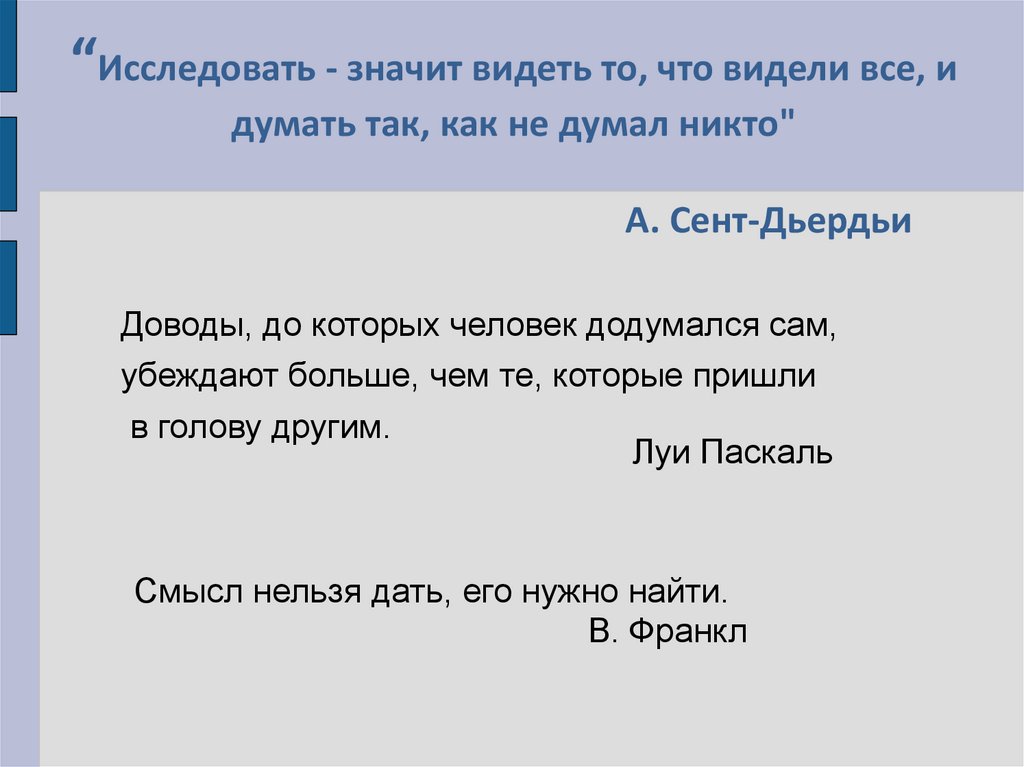 “Исследовать - значит видеть то, что видели все, идумать так, как не думал никто"