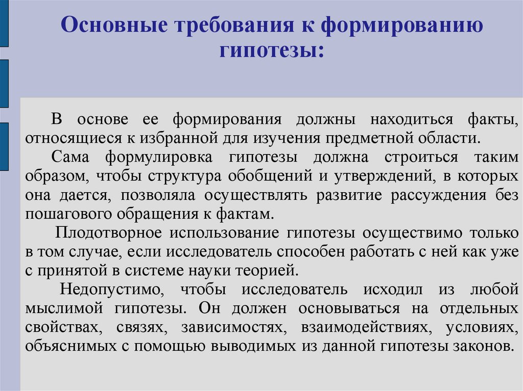 выдвижение гипотезы. Гипотеза – это утверждение вида