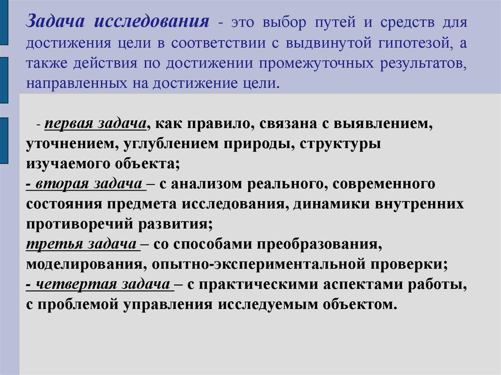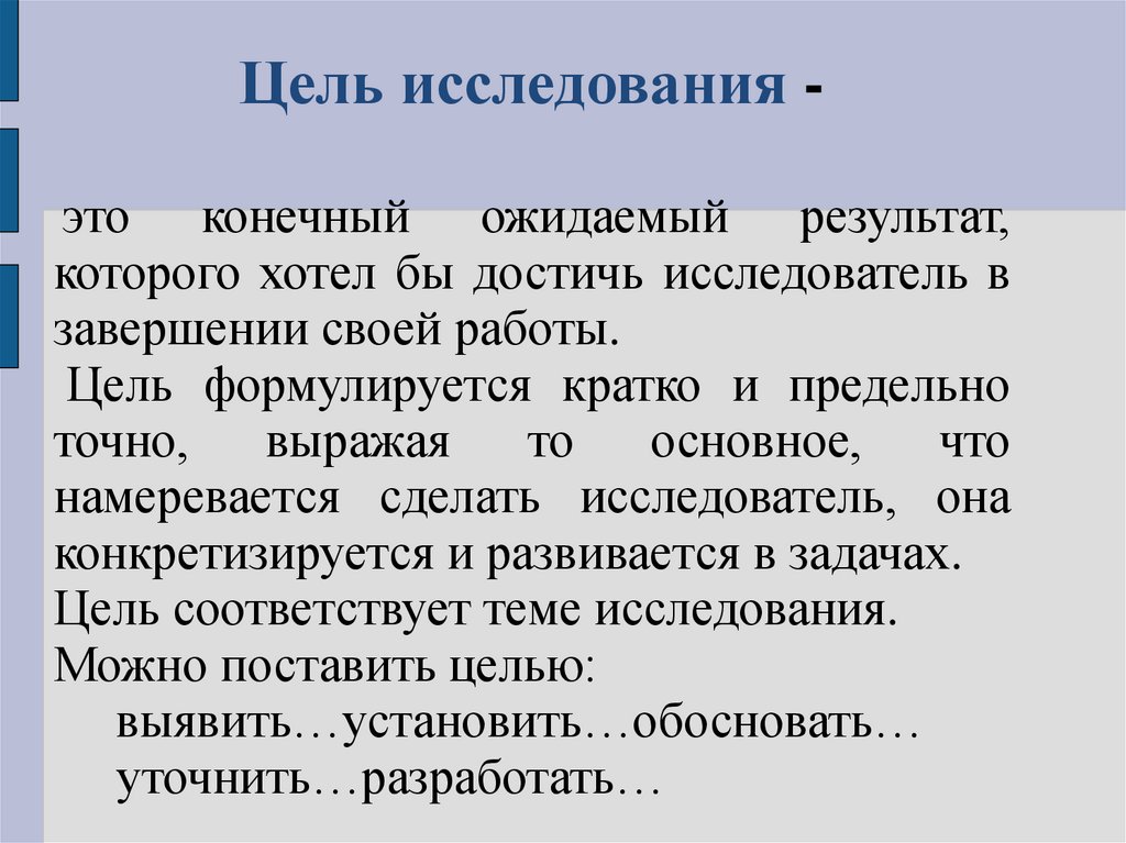 Формулирование цели и задач исследования
