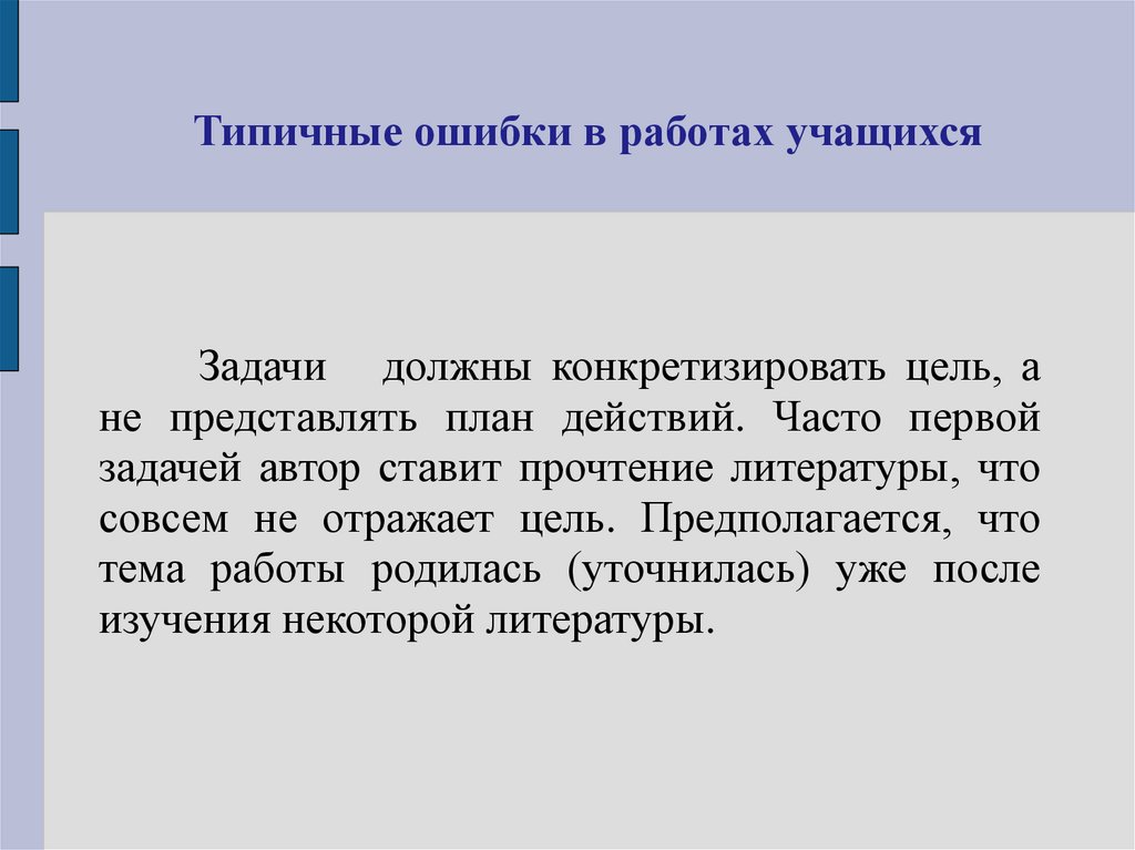 Типичные ошибки в работах учащихсяЗадачи должны конкретизировать цель, а