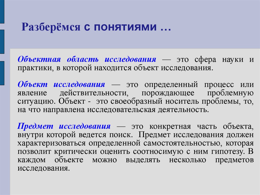Разберёмся с понятиями …Объектная область исследования — это сфера науки и