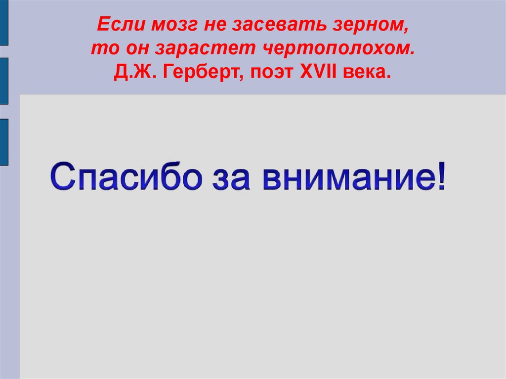 Если мозг не засевать зерном,то он зарастет чертополохом.