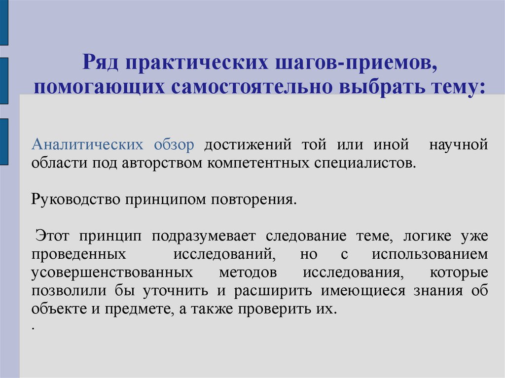 Ряд практических шагов-приемов,помогающих самостоятельно выбрать тему: