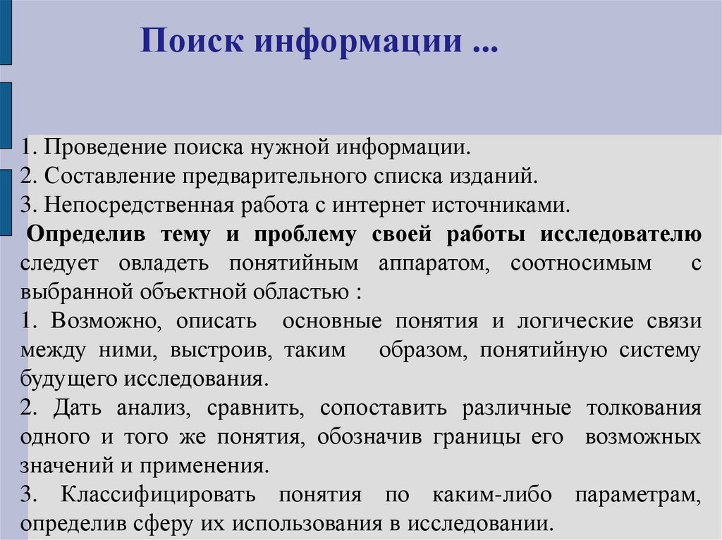 Поиск информации ...1. Проведение поиска нужной информации.