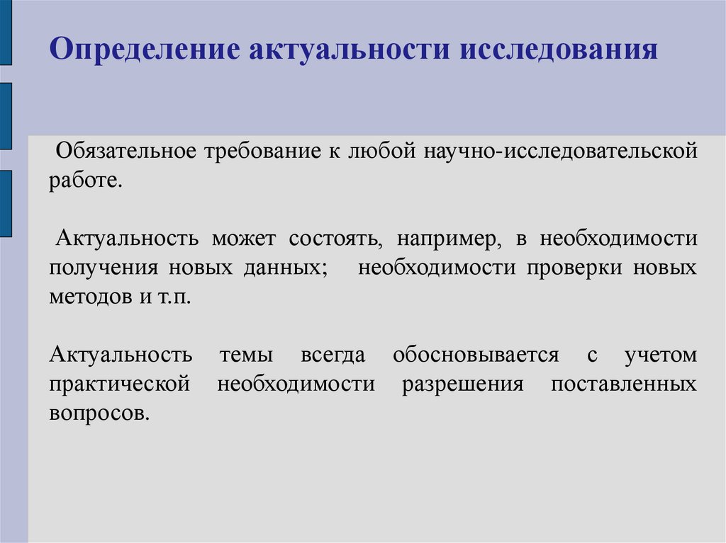 Определение актуальности исследованияОбязательное требование к любой научно-исследовательской