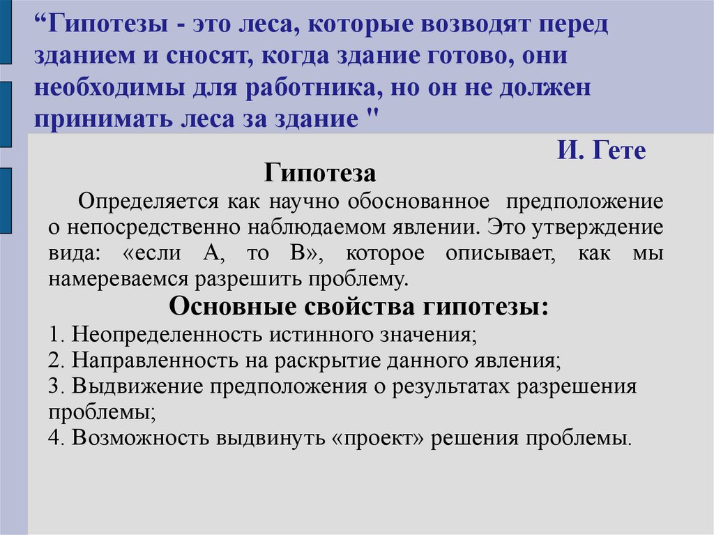“Гипотезы - это леса, которые возводят передзданием и сносят, когда здание готово, они