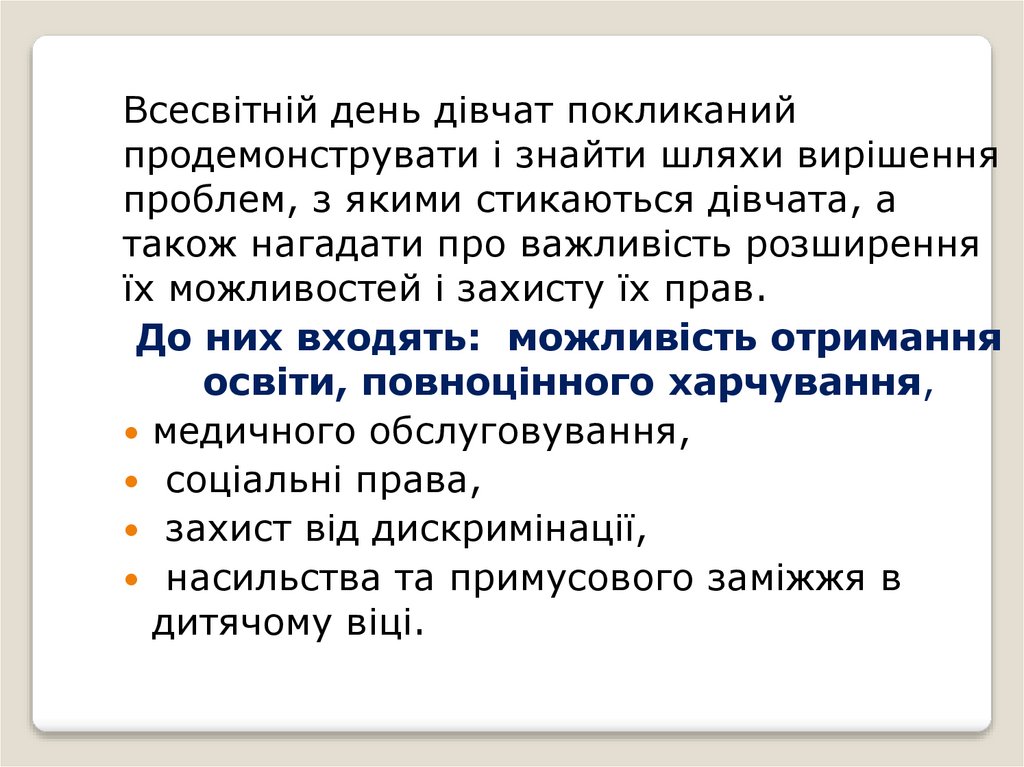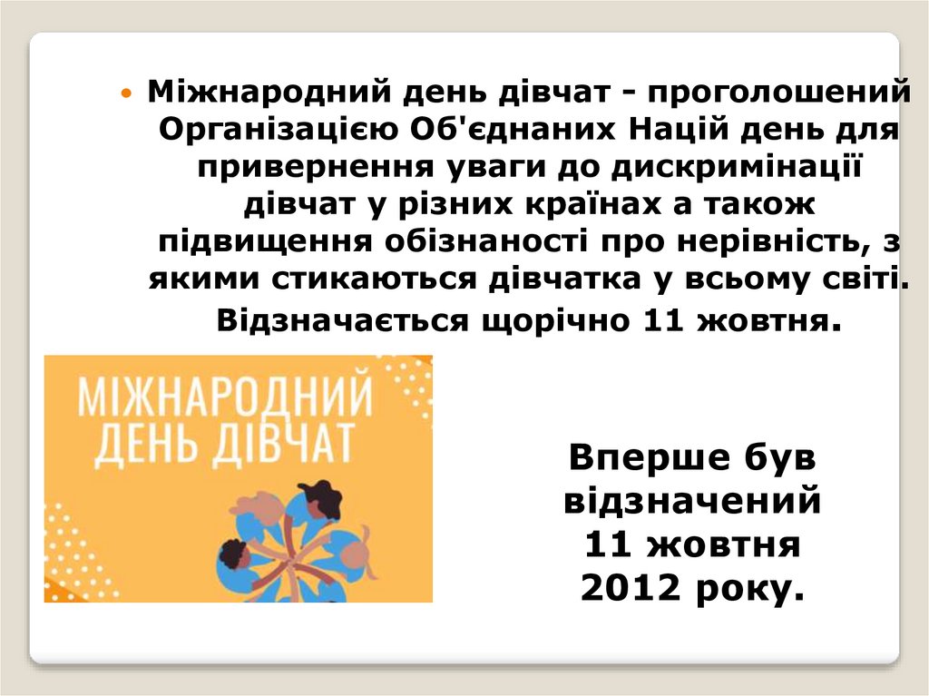 Міжнародний день дівчат - проголошенийОрганізацією Об'єднаних Націй день для