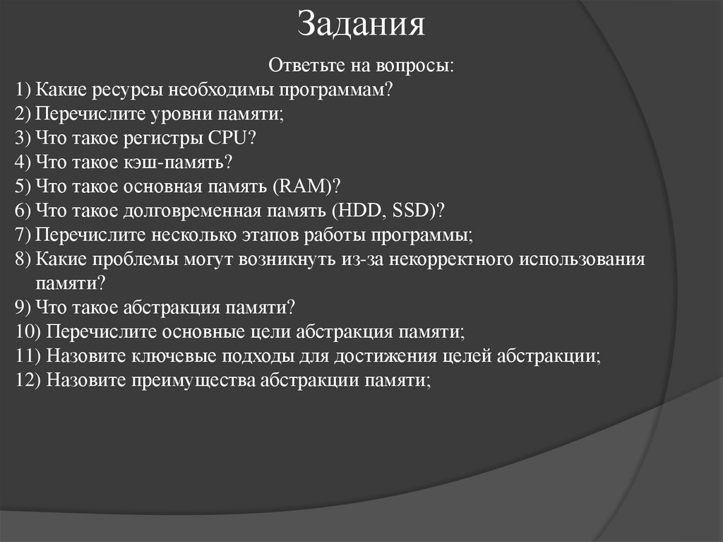 Абстракция памяти — это процесс отделения представления объектовпрограммы от реальных физических адресов оперативной памяти компьютера.