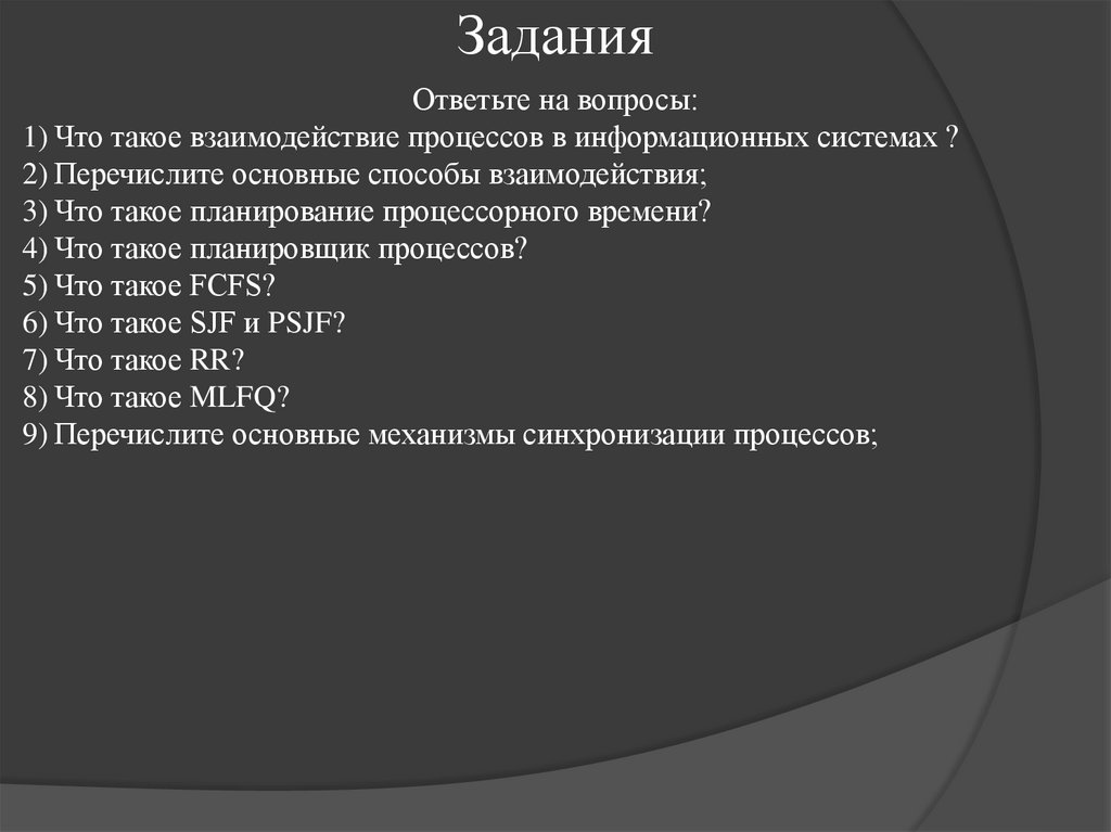 Взаимодействие процессов в информационных системах — это обмен даннымии информацией между процессами, а планирование процессов — это