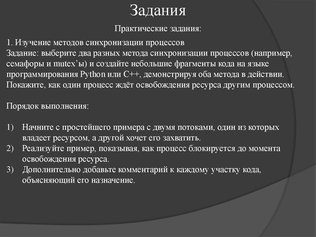 семафоры и mutex’ы) и создайте небольшие фрагменты кода на языке