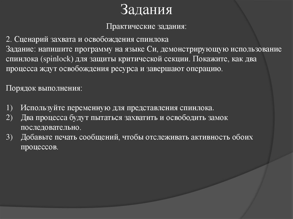 спинлока (spinlock) для защиты критической секции. Покажите, как два